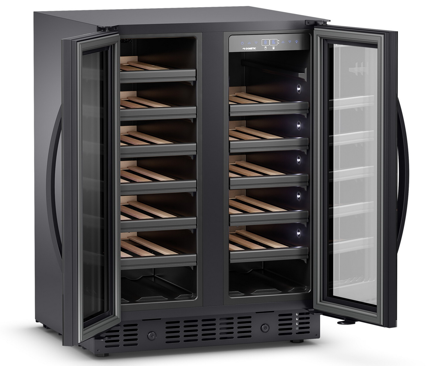 All Dometic wine refrigerators are fitted in the factory with an effective front ventilation system. The warm air coming from the compressor is flowing directly to the front ventilation grill where it’s released outside – a unqiue benefit for built-in use.